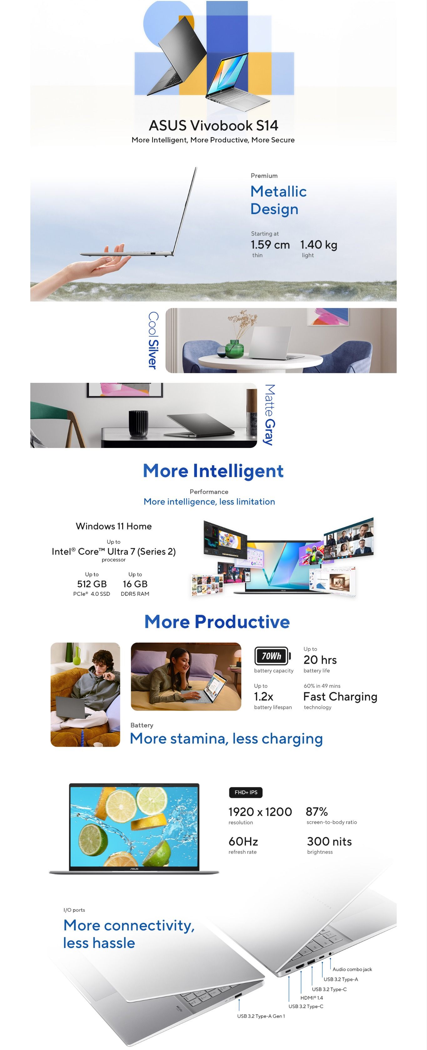 2x USB 3.2 Gen 1 Type-A (data speed up to 5Gbps), 2x USB 3.2 Gen 1 Type-C with support for display